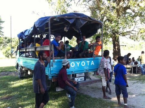 Der Schulbus bringt die älteren Kinder der Studentenfamilien täglich in die Highschool nach Gagidu und wird von jedermann gern als Mitfahrgelegenheit genutzt. Im kleinen Campusladen gilt „Maski long Dinau“ – kein Kredit. Was macht man an einem Samstag Nachmittag in Logaweng? Wäsche waschen, kochen, Basketball spielen, zusammensitzen.