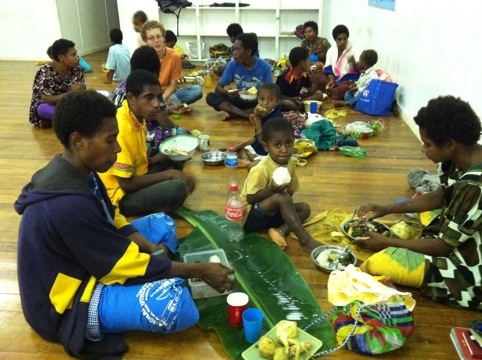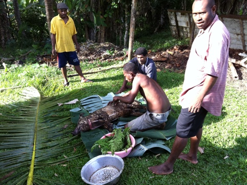 Einen Schweinebraten gibt es nicht oft. Die angehenden Vikare und ihre Familien feiern Abschied und haben eingeladen. Alle freuen sich auf die willkommene Unterbrechung der bis auf gelegentlichen Dosenfisch und Corned Beef üblicherweise vegetarischen Kost.