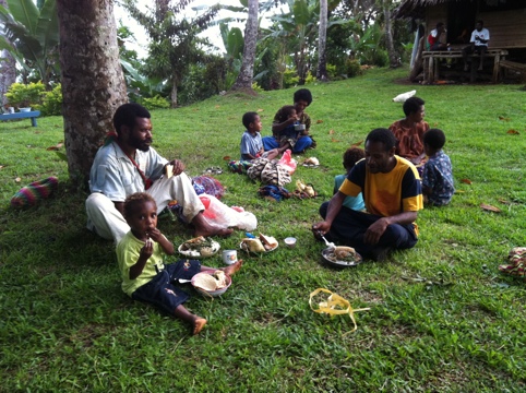 Die gemeinsame Vorbereitung und Vorfreude steigert den Genuß beim Essen. Hier ein paar Bilder zum Abschiedsessen eines Seminary-Arbeitskreises. Alle Familienmitglieder sind dabei. Los ging es in der Früh mit der Ernte im Garten und Feuerholz heranschaffen. Nach dem Kochen und einem ausführlichen open-air-Gottesdienst, ging es um etwa 16h ans Essen. Das war für fast alle außer mich die erste und einzige Mahlzeit am Tage. Entsprechend waren die Teller beladen. Zu den anschließenden Reden wurde süßer Kaffee oder Tee getrunken. Inzwischen nehme ich auch gern drei gehäufte Löffel Zucker pro Tasse. Auf die Frage, was er denn für ein Auto fahre (die beiden Räder mit der Stange, erkennt Ihr’s?), kam prompt die Antwort: Porsche.