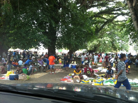 Leider darf ich nicht mit auf den Markt. Während die beiden Weltwärts-Freiwilligen losziehen, passe ich aufs Auto auf. Schnell verschwindet mal ein Rücklicht. Aufbrechen? Das geht wan tu.