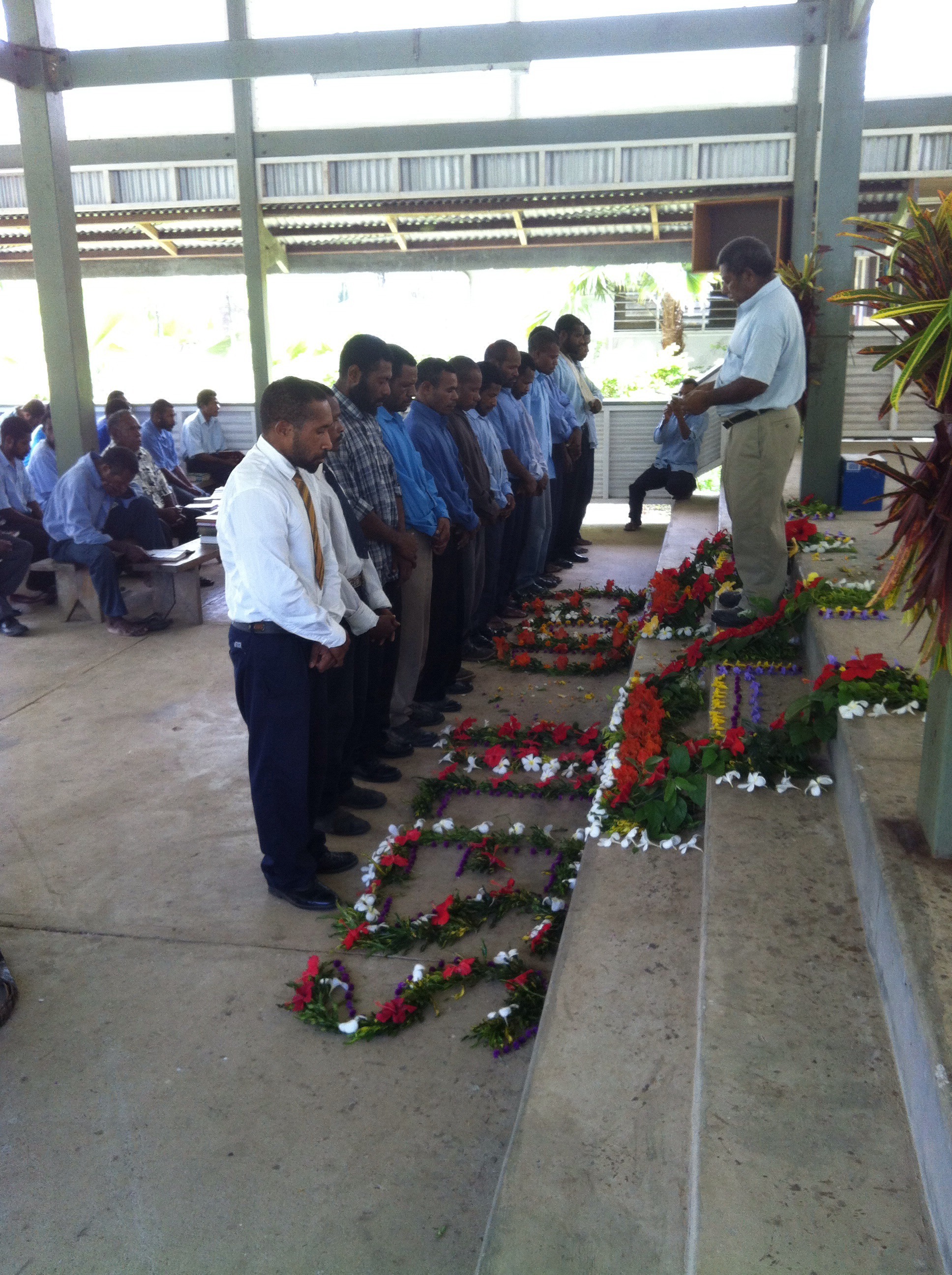 Pasto(ohne „r“ gschrieben) George sendet die Studenten des 3. Jahrgangs ins 10-Wöchige Gemeindepraktikum. Küstenleute gehen ins Hochland, Städter in den Busch und umgekehrt. Alle sind aufgeregt und ein wenig ängstlich, fern der wantok* und beschützenden Schule zu sein. Tasol olgeta i redi. Alle sind bereit. God Bless.