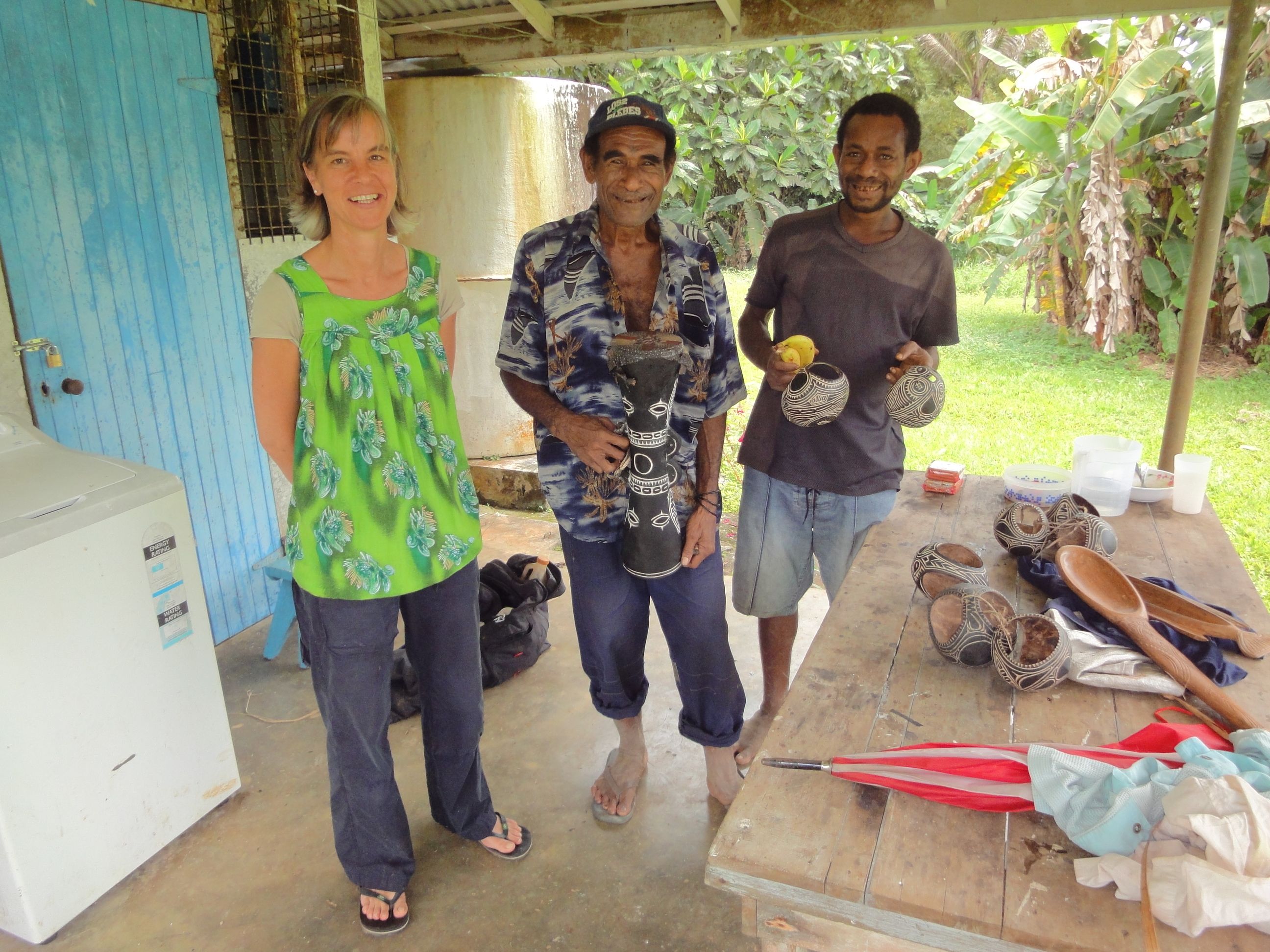 PNG nennt sich in den Werbeprospekten „The Land of Paradise“. Ich kann das gut verstehen. Heute Nachmittag ist es hier paradiesisch in Logaweng: Ein anregender Vormitag mit den Studenten und Lehrern liegt hinter mir. Zu Mittag gabe es Süßkartoffeln in Kokossuppe, dazu geräucherter Riff-Fisch, als Nachtisch gedünstete Bananen über Pomelo und dann einen Espresso. Es scheint die Sonne, eine leichte Brise weht vom Meer her. Auf dem Campus herrscht ein geschäftiger Frieden. Freundliche Menschen von der Insel Tami kamen vorhin ans Haus. Ich hatte sie informiert, dass wir Interesse an ihren Schnitzereien haben. Und so kamen sie den weiten Weg mit dem Speedboat, dann noch eine Strecke per PMV (Public Motor Vehicle) und schließlich eine Stunde per Pedes zu uns und boten ihre Schnitzereien zum Verkauf an.