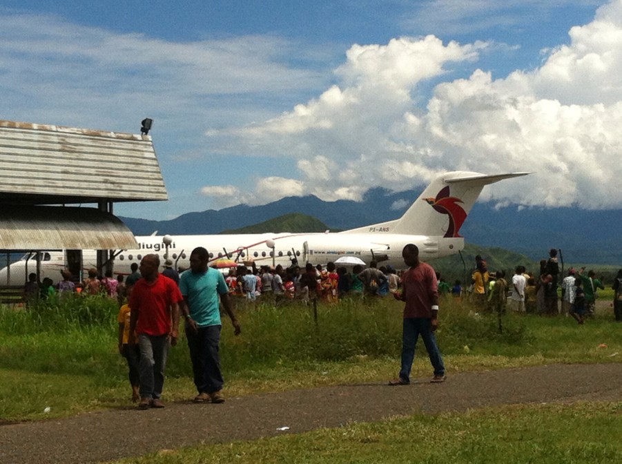 Zeitbedarf, um Martin zum Flughafen nach Lae zu bringen: Vier Tage. Dauert länger und ist für uns ungeduldige Deutsche anstrengender als eine Konfirmandenfreizeit. Am Flughafen Nadzab wurde unsere Geduld noch einmal auf die Probe gestellt. Der Flug nach Port Moresby verspätet sich. Flight tracker im Internet: Angaben N/A oder „departed“. Erstaunlich: Es kommt auch nach zwei Stunden Wartens keine Nervosität auf. Keiner geht zum Schalter und fragt nach. Nur einer der wenigen Australier läuft hektisch auf und ab mit Handy am Ohr. Irgendwie benimmt er sich peinlich. Nach lediglich drei Stunden Verspätung hebt die Maschine ab. Ob Martin wohl in POM seinen Anschlussflug nach Manila erreicht? Bai yumi lukluk.