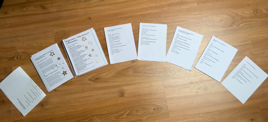 Las wiken, adven 2, mipela inap redim ol samting blg krismas: advent wreath blg makim ol fopela sande wantaim kendol istap. Mi yet mi hanagamapim sta blg ol lain Herrenhut (buk „Givim mipela kaikai bilong dispela de“ i kam lg ol) na baim krismas tri. Tri mi bilasim wantaim electric kendol. Gertrud i bin wokim Krismas Kek. Hau lg kukim i bihainim pasin tumbuna. Mi redim olgeta lotu – olsem lituji, autim tok, progrem – stat lg adven 3 inap lg Niu Yia De. Krismas inap kam nau. Na yu? Yu stap redi