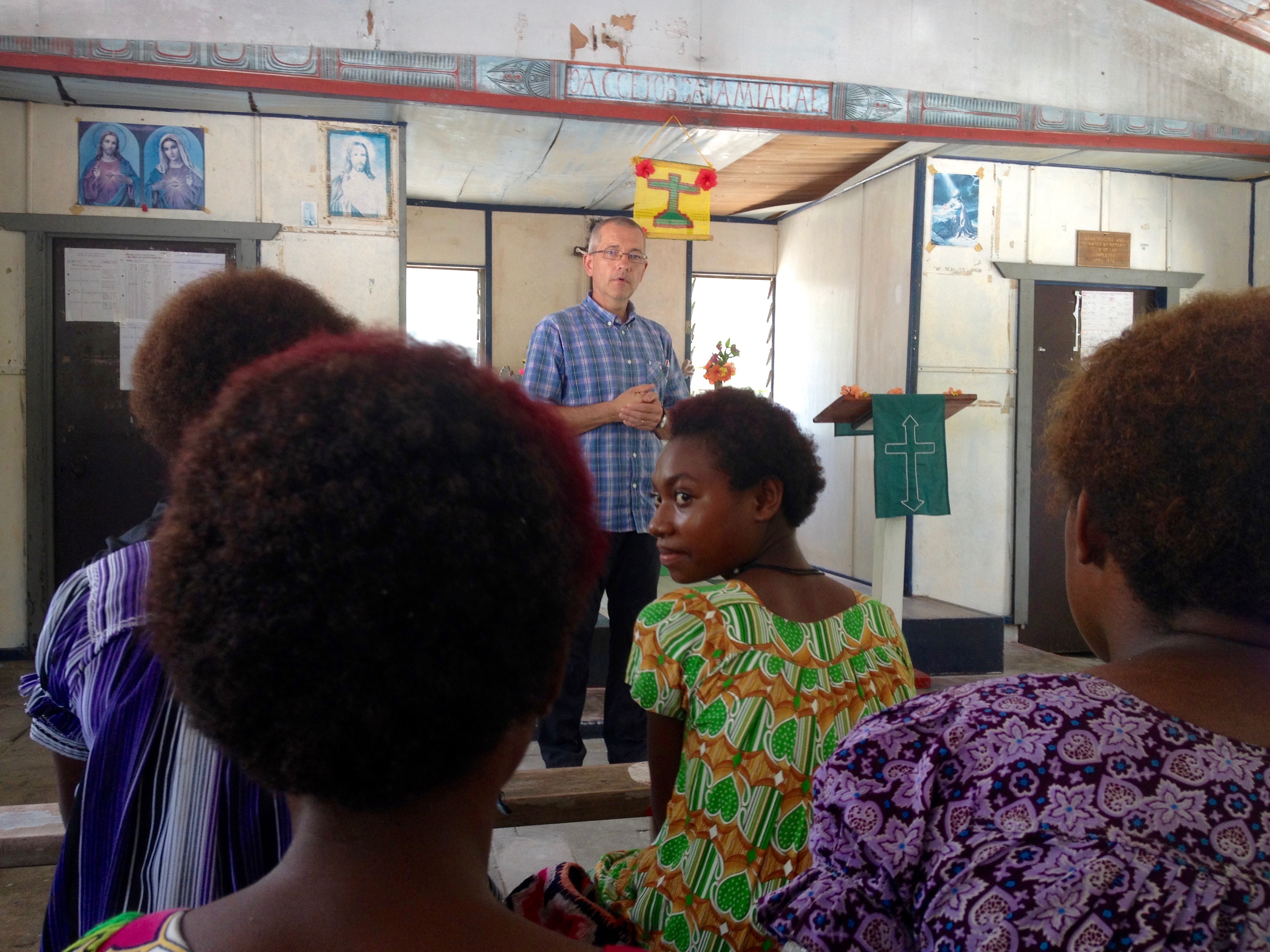 Aber: Vier Stunden ohne Buai/Betelnusskauen und Brus/Tabak! Das ist für die meisten unserer Lehrer eine große Herausforderung. Umso schöner ist jetzt ein Buai Ron, eine Fahrt nach Godowa, wo sich ein kleiner Kiosk in der Nähe des Krankenhauses befindet. Dort gibt es eine gute Auswahl an Buai und Brus. Mein Beitrag als Treasurer/Schatzmeister dazu: Wanbel na Tok Orait, einverstanden und Ja dazu, aus dieser Fahrt (9km) eine Dienstfahrt zu machen, deren Kilometerkosten das Seminary trägt.
