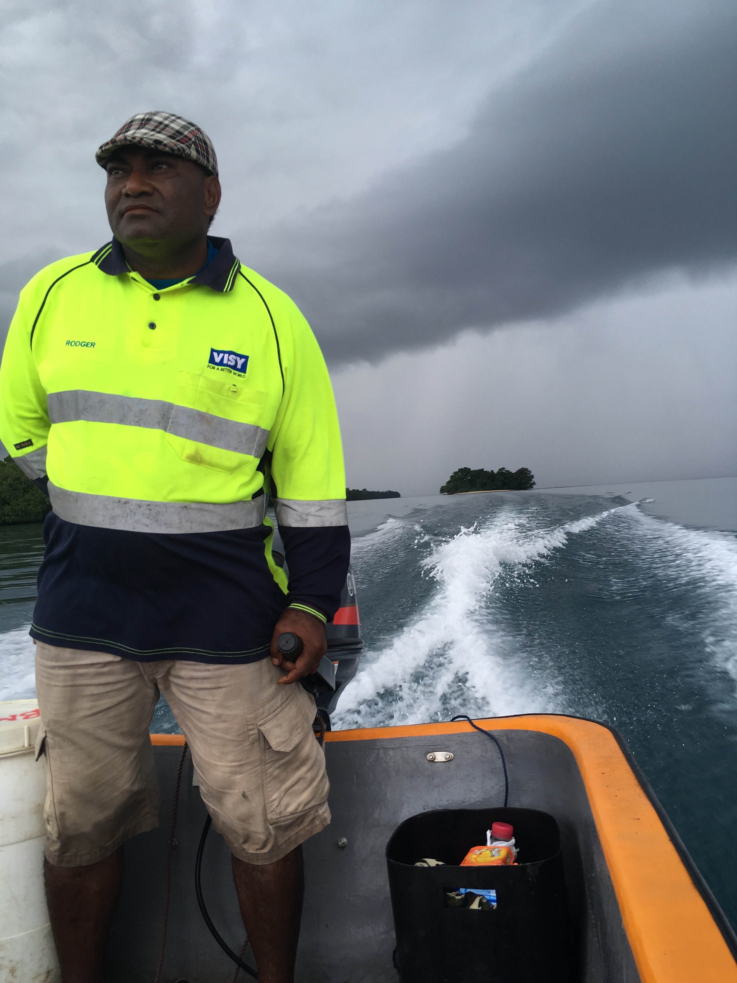 Unser Skipper hält noch Ausschau nach zahlenden Passagieren (100 Kina/28 €). Er findet nicht, daß das Boot schon voll ist.