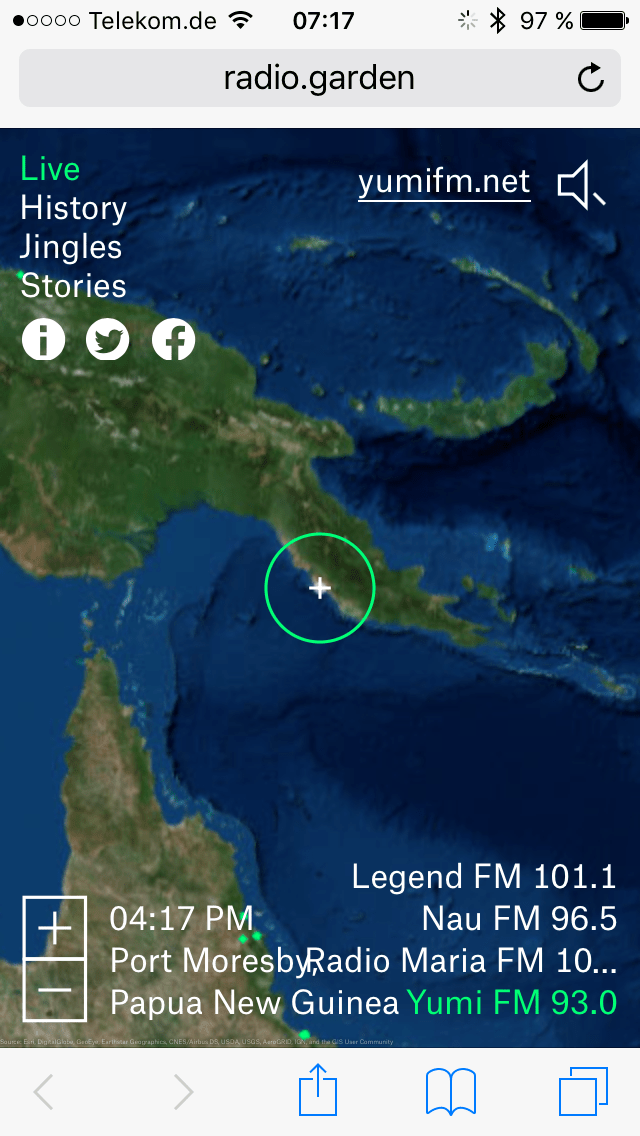 Nau moning mitupela Gertrud i sindaun na kaikai brekfest. Musik i kam stret lg Mosbi. Mipela i laikim tru tru stail na nek blg ol chart hits blg PNG. Tingim, redio stesin i no stap klostu. Em 14.000 km samting. Tasol progrem mipela inap harim lg stereo. Internet i mekim yumi i stap klostu wantaim. Tasol em kain olsem bikpela ilusen. No ken lus tingting: Internet em virtual reality tasol. Taim yu ritim dispela teks yumi no inap sindaun na toktok na kaikai na dring kopi wantaim. Sori tru.
