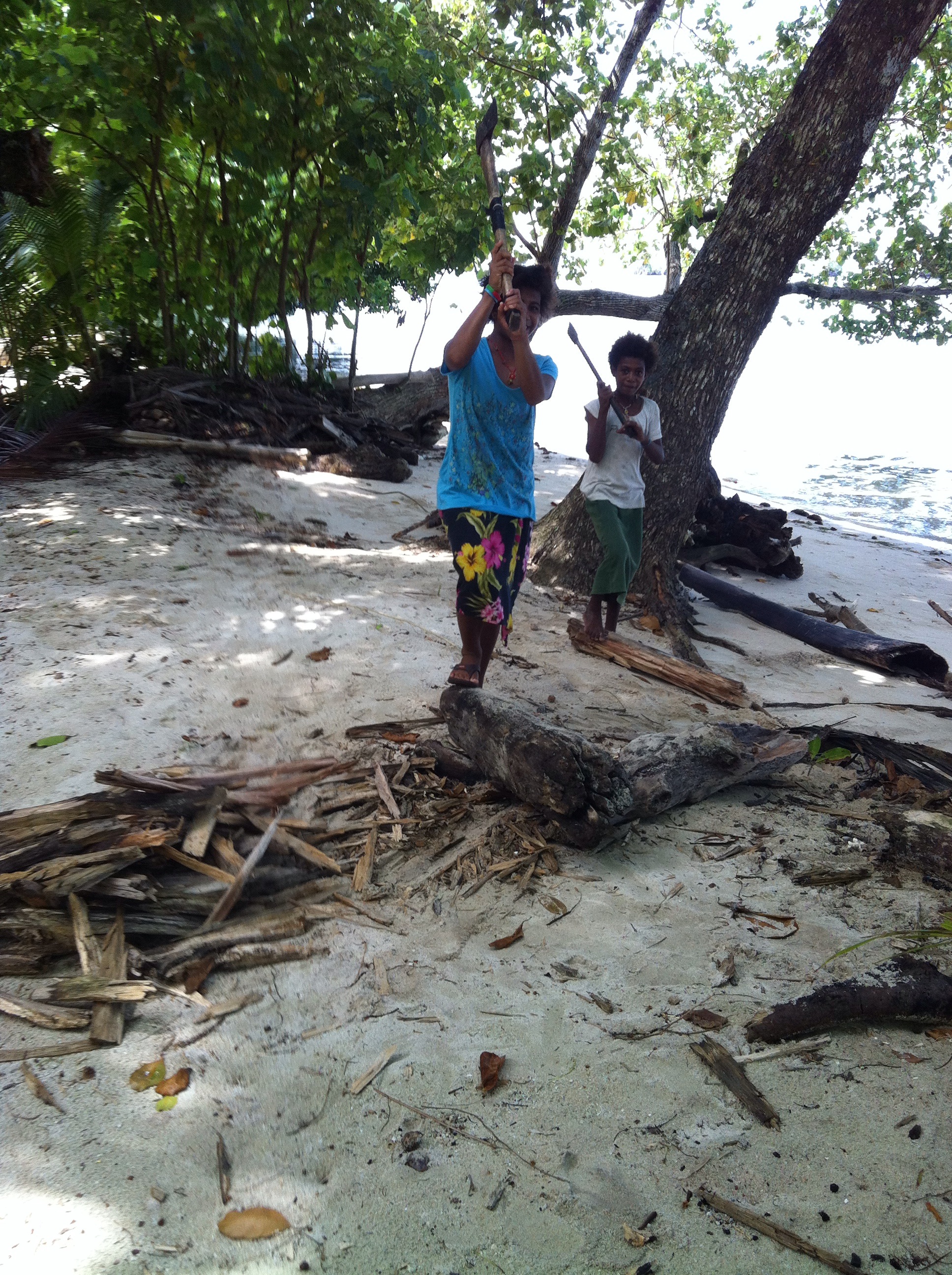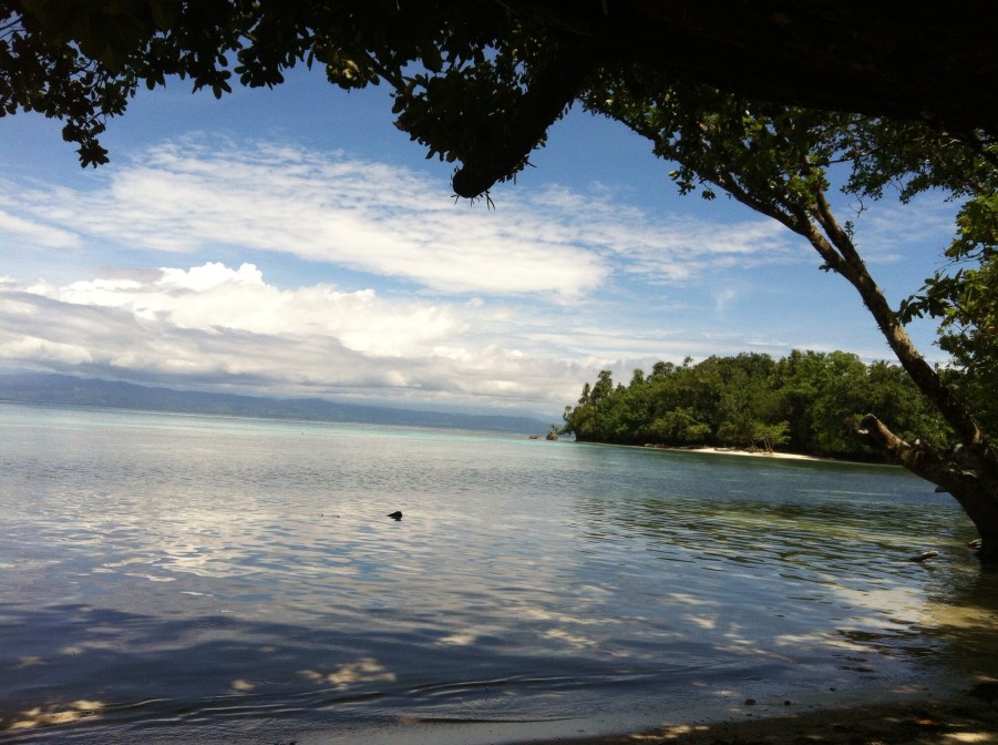 Tami – eine kleine Inselgruppe etwa eine halbe Std. vom Festland entfernt. Dort sitze ich am Strand, während Gertrud, Martin und einige Weltwärtsfreiwillige schnorcheln. Internet 3G. Die Dorfkugend hört Wind of Change von den Scorpions auf ihren MP3-Boxen. Text können sie auswendig. Einige Mädchen hacken derweil das Holz zum Kochen. Da ich still sitze, bevölkert auch die hiesige Krabbenart wieder den Strand. Paradise.